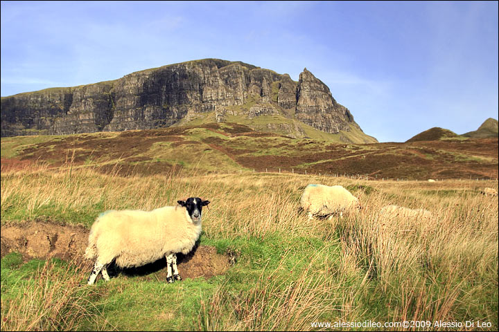 L'isola di Skye, che in gaelico significa isola delle nuvole, è la più grande della Scozia. Le principali attrattive di Skye sono la grande ricchezza naturalistica e il desolato territorio selvaggio: le scogliere vulcaniche a strapiombo si alternano a lunghe spiagge rocciose; le basse montagne ricoperte da torbiere lasciano il posto a pascoli e foreste. Sull'isola è anche possibile visitare castelli e musei, caratteristici pub e ristorantini che conservano ancora il fascino di tempi passati. . Gran parte dell'isola è lasciata al pascolo di pecore e bovini di razza Highland, che mi hanno tenuto compagnia durante le lunghe camminate per le brughiere, solcate da piccoli ruscelli e immerse in un mare di erba bassa e piante di erica. E' il luogo ideale per gli amanti della natura, con tante possibilità di escursioni sia in barca che a piedi, alla scoperta della fauna scozzese. Il clima relativamente mite per la sua latitudine, rende Skye adatta per essere visitata anche nei periodi autunnali. Un buon metodo di visitare l'isola e quello di partire la mattina presto e compiere il giro in senso antiorario, in modo da avere sempre il sole alle spalle, per una migliore riuscita delle fotografie. Inoltre bisogna fare bene i conti con il carburante, in quanto sono presenti pochi distributori.