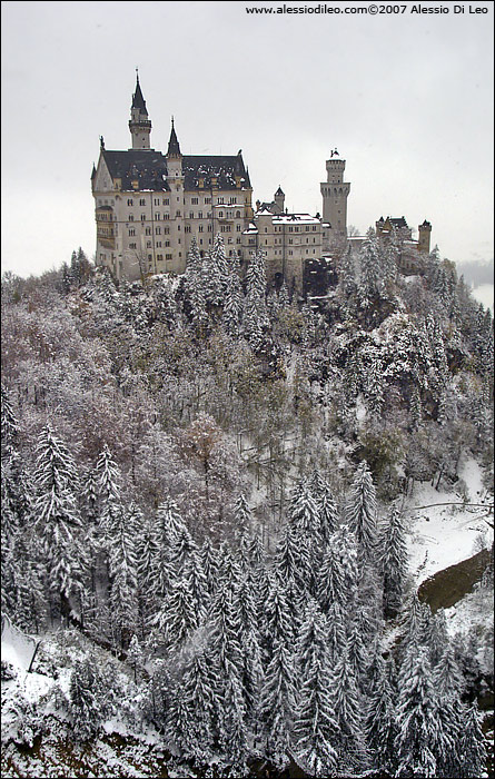Neuschwanstein sorge in cima alla collina che domina la cittadina di Schwangau e la fortezza di Hohenschwangau. La vista del castello lascia letteralmente a bocca aperta, sia per la bellezza del magnifico paesaggio alpino in cui è avvolto, sia per la complessità del progetto.