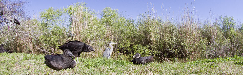 | Gli Urubù in realtà sono degli avvoltoi facilmente avvistabili in tutta la Florida. Si nutrono principalmente di carogne, che localizzano durante il loro tipico volo planato, grazie alla vista eccellente e all'olfatto sviluppatissimo. |